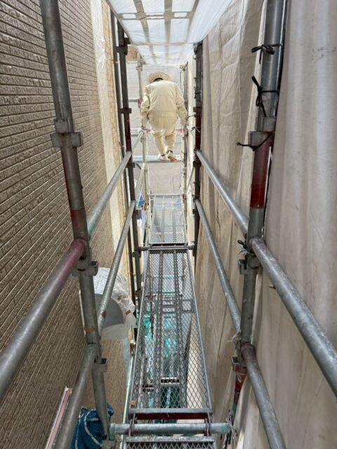 先日、弊社管理物件のアパートで進めている外壁改修工事の